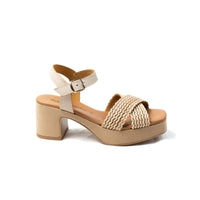 • Criss-cross raffia or clean suede strap design